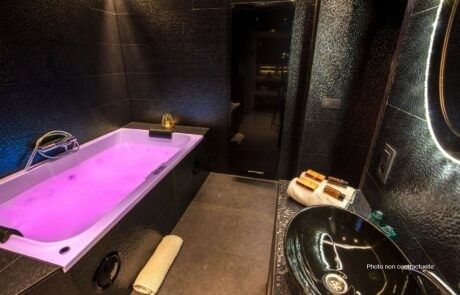 L’Écrin est un véritable joyau offrant un parfait mélange de luxe, de glamour et d’intimité. Cette chambre avec jacuzzi privatif, raffinée et élégante, est conçue pour offrir une atmosphère inoubliable. L’idéale pour les couples en quête d’une expérience romantique et d’un moment de détente absolu.