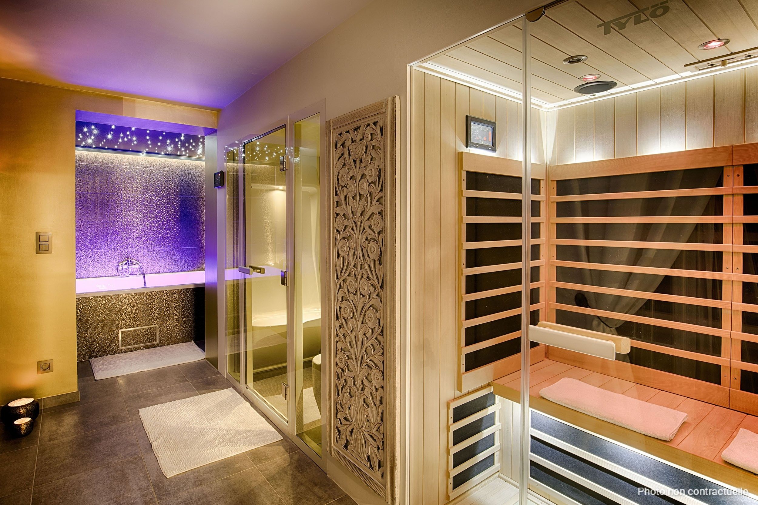 Idéale pour les couples en quête d’une nuitée exceptionnelle, cette chambre à thème et son espace wellness offrent à ses locataires une expérience inoubliable.